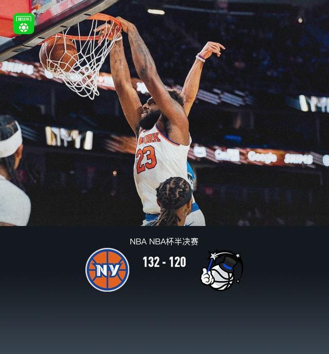 北京时间12月14日NBA NBA杯半决赛,纽约尼克斯对阵奥兰多魔术。半场尼克斯71-64魔术,最终尼克斯132-120魔术,率先挺进NBA杯决赛,对手将在马刺和雷霆中产生。
