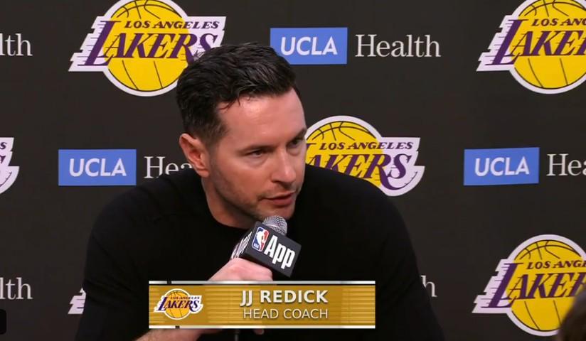 比赛最后时刻,湖人曾因狄龙-布鲁克斯撞击詹姆斯而获得1次技术罚球,最终詹姆斯执行了这次关键的罚球但没有命中。赛后,湖人主帅雷迪克接受了采访谈到了这一回合。