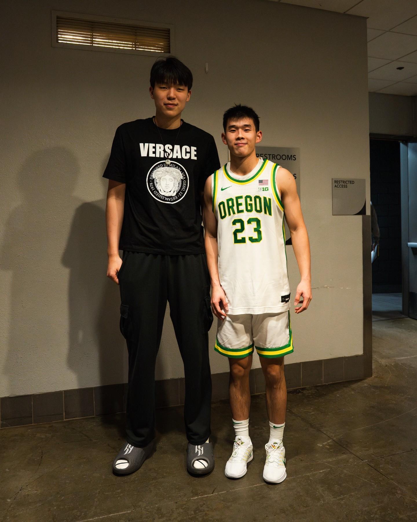 都是追梦人,开拓者官方和俄勒冈官方分享杨瀚森与林葳合影