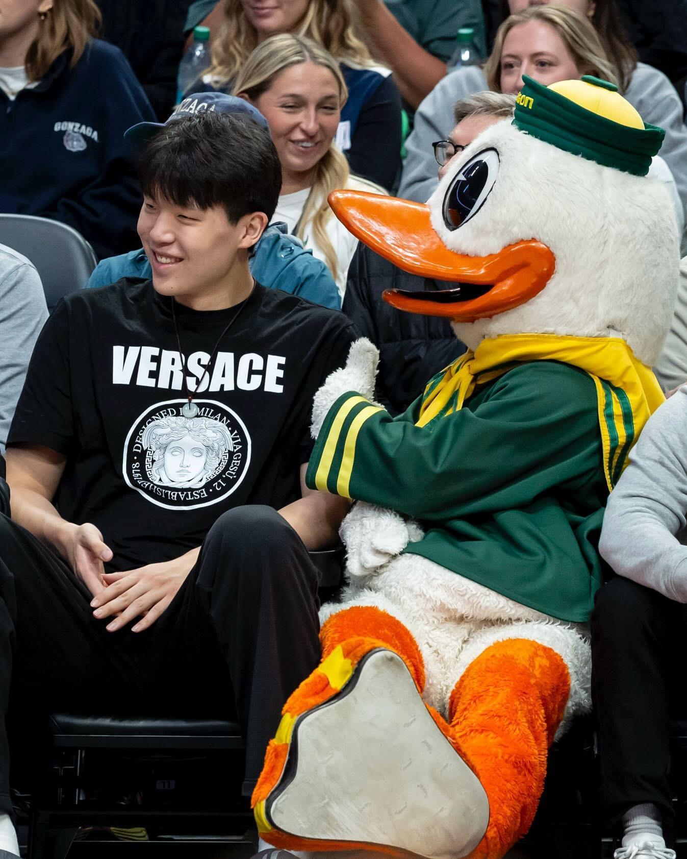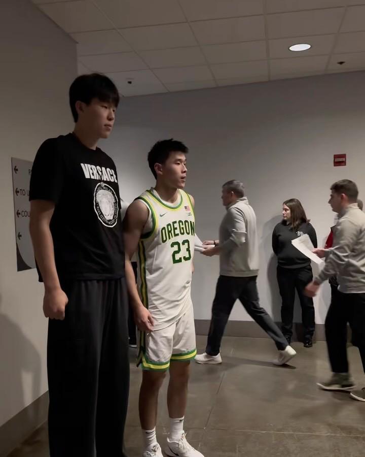 赛后,开拓者官方联合俄勒冈大学官方在社媒分享出杨瀚森与林葳的互动视频及合照。